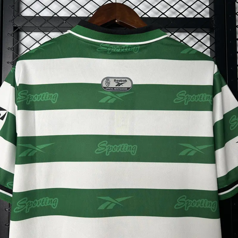 Relive the glorious era of Portuguese football with this authentic-feeling 1999-2000 Sporting Lisbon home retro soccer jersey. This classic green and white striped design, featuring the iconic eagle crest, captures the spirit of the Lions during one of their most memorable seasons.