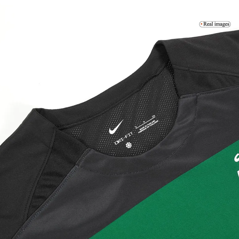 The 2024/25 home jersey honors Sporting’s timeless visual identity while introducing contemporary style. The design is dominated by the legendary vertical green and white stripes, a pattern that has become synonymous with the club’s fighting spirit and success for over a century. This season’s stripes are presented with a modern, clean aesthetic, ensuring a sharp and classic look.