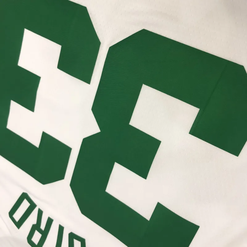 - Legendary Number & Name: The large, easy-to-read number 33 is showcased on the front and back in green with gold trim. The surname “BIRD” is arched across the shoulders in the same classic font, ensuring instant recognition.