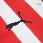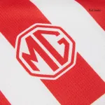 This replica jersey masterfully balances classic heritage with contemporary style. The body features the iconic, bold vertical stripes in a vibrant red and pure white, a design instantly recognizable across the globe.