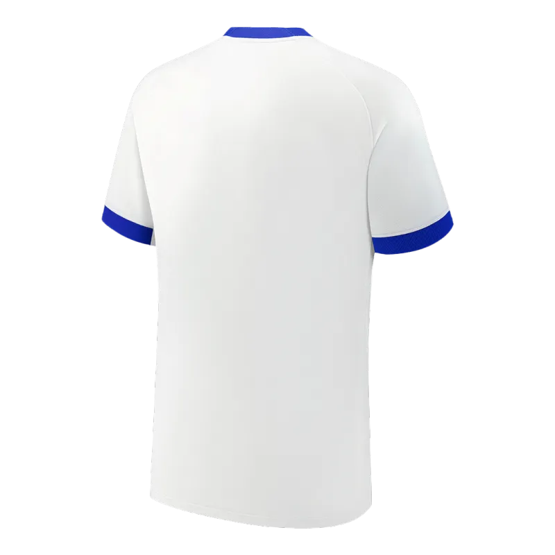 - Authentic Colors: The jersey features the classic, deep English white, adorned with distinctive navy and red accents that run from the shoulders down the sleeves, creating a dynamic and powerful silhouette.