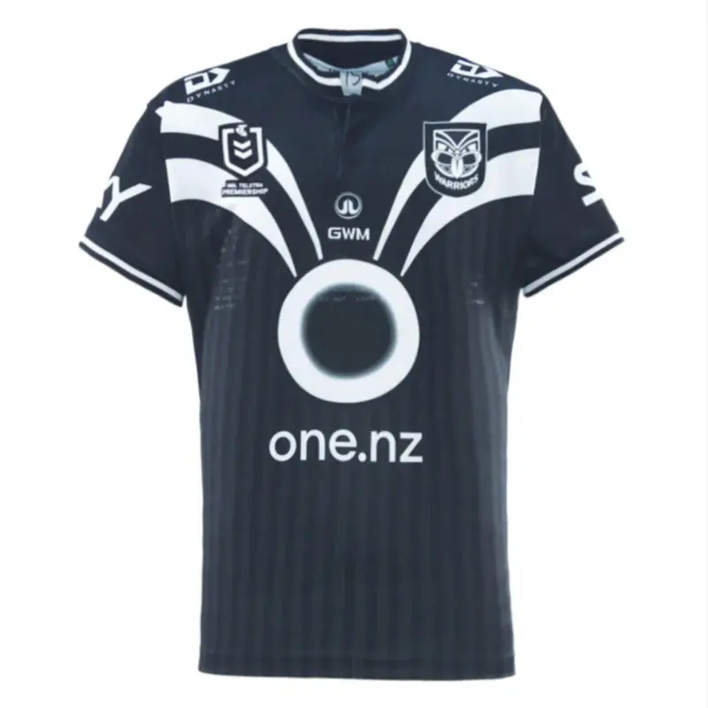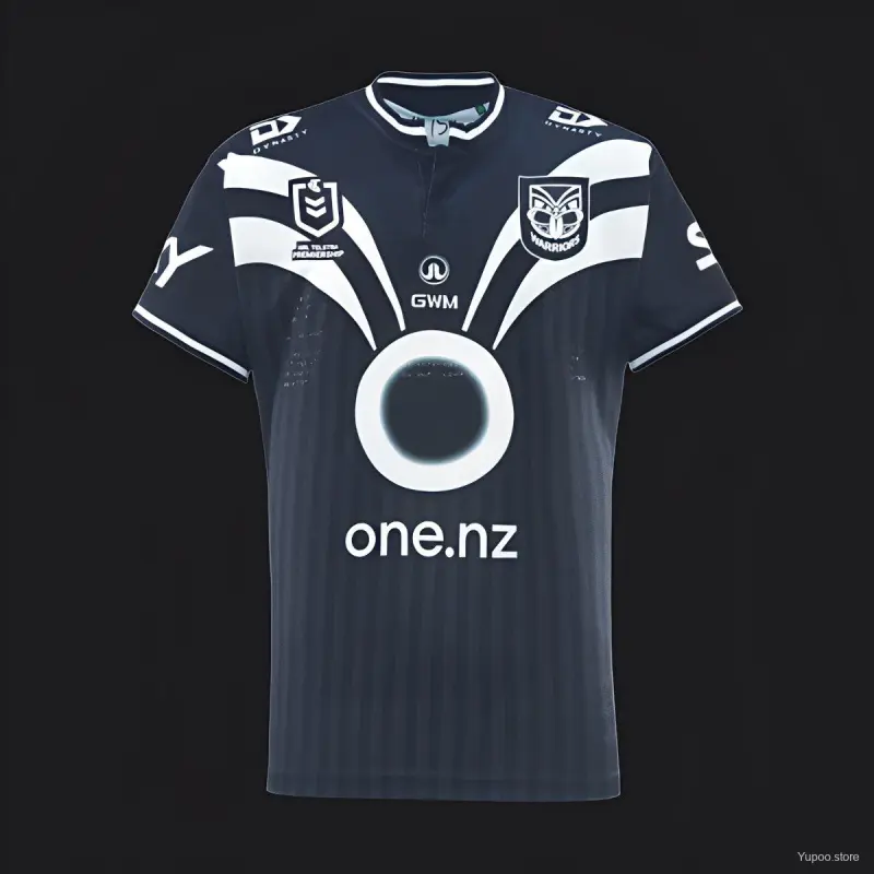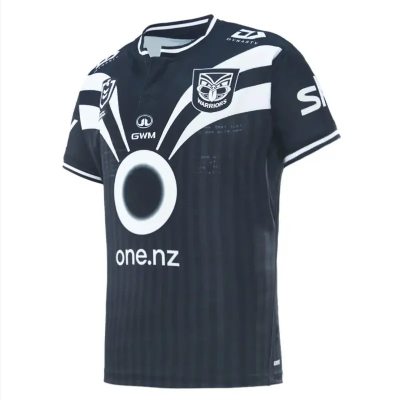 25/26 New Zealand Warriors Navy Blue with Green and Red Diagonal Stripes and Circular Gradient Heritage Jersey