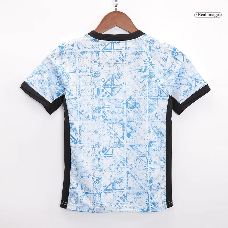 Portugal’s national team, known as “A Seleção,” boasts a rich footballing history filled with iconic players and unforgettable moments. From their famous red and green home colors, the away kit often presents a bold and modern alternative. Wearing this fan version jersey connects your young player to a legacy of flair, technical brilliance, and a never-give-up attitude that defines Portuguese football. It’s a chance for them to feel part of a team that plays with heart and soul on the international stage.