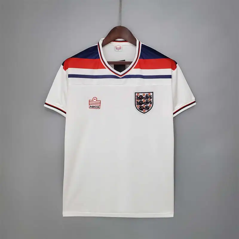 Relive the glory days of English football with the iconic 1982 England home Retro Soccer Jersey – a faithful recreation of the kit worn during the 1982 World Cup campaign. Crafted for true supporters, this classic white polyester shirt features the signature Three Lions crest embroidered over the heart, vibrant navy trim on the collar and sleeves, and breathable fabric for modern comfort. The relaxed fit celebrates authentic 1980s styling, making it perfect for match days, fan gatherings, or as a timeless tribute to England’s football heritage.