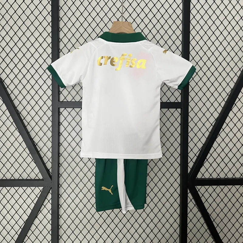 Dress your young fan in the officially styled 2024-25 Palmeiras Away Kids Kit – a vibrant fusion of football passion and artistic design! Inspired by Palmeiras’ historic 1951 Club World Cup victory, this limited-edition away jersey features a striking golden base with Baroque-inspired leaf motifs, celebrating the club’s rich Brazilian-Italian heritage:cite[2]:cite[4].