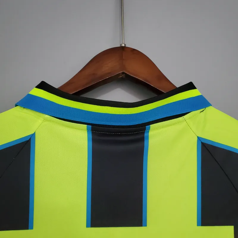 Relive the iconic 1998–99 season with this authentic-style retro Manchester City away jersey – a must-have for true Sky Blues supporters. Crafted for comfort and nostalgia, this vintage-inspired piece captures the classic design that defined an era of passion on the pitch.