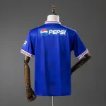 - Signature Stripe Accents: The jersey is adorned with the famous darker royal blue and white horizontal stripes across the chest, a defining feature of this iconic kit.
