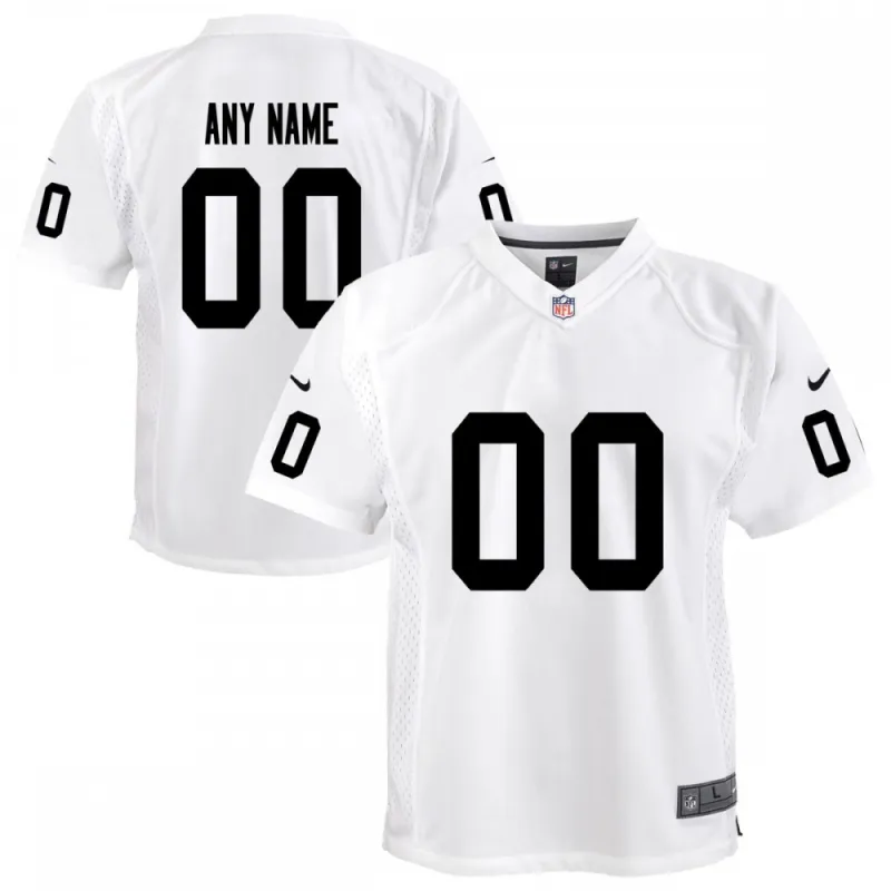 Il prezzo originale era: $129.98.$24.98Il prezzo attuale è: $24.98.Las Vegas Raiders Nike Youth Team Custom Game Jersey – White