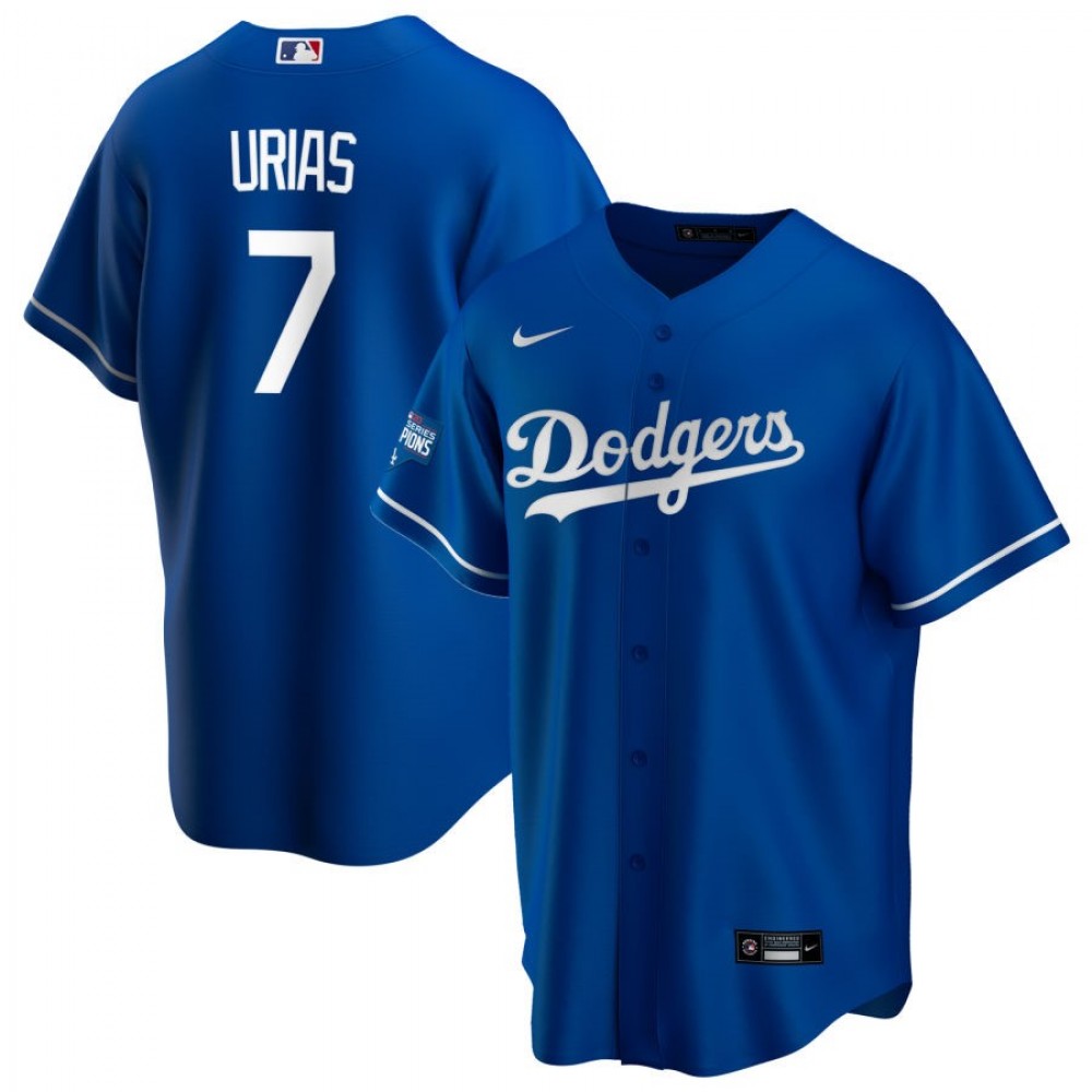 Il prezzo originale era: $119.99.$23.99Il prezzo attuale è: $23.99.Men’s Los Angeles Dodgers Julio Urías #7 Nike Royal 2020 World Series Champions Home Jersey
