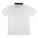 This retro soccer jersey stands out with its striking and unconventional design, a hallmark of 90s football kits. It features a bold, tonal pinstripe pattern across the entire body, creating a dynamic visual texture that catches the light and the eye. The classic crew neck and short sleeves offer a timeless, comfortable fit.