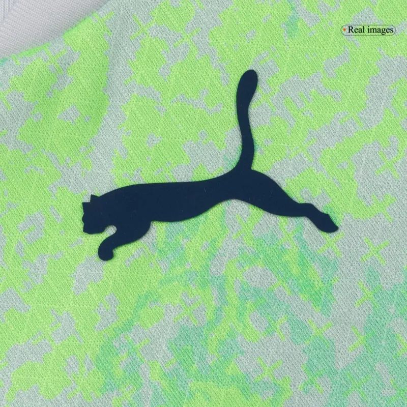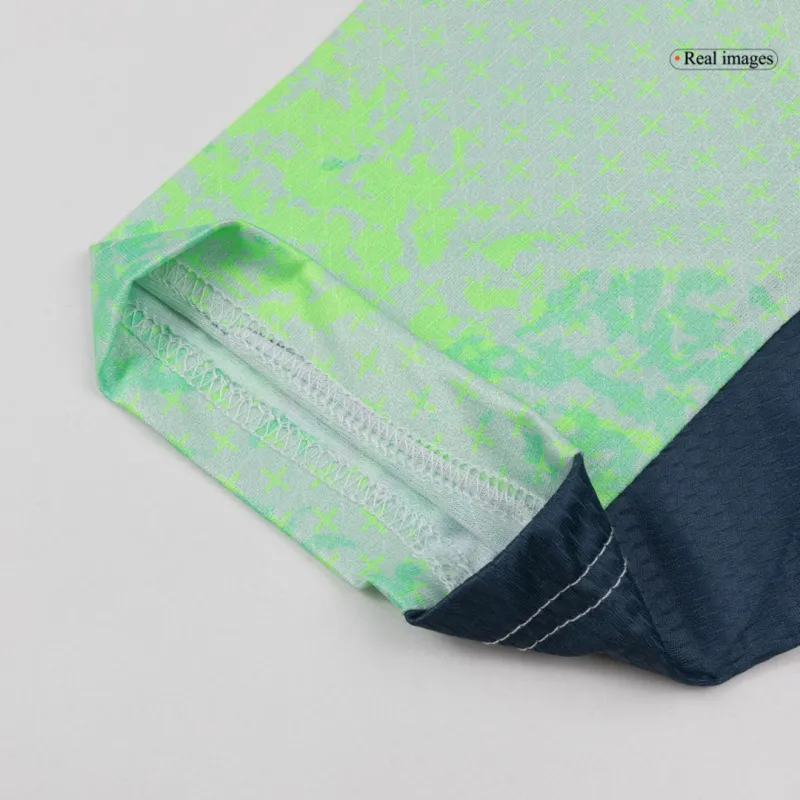 - Bold Graphic Pattern: The jersey features a striking, diagonal graphic stripe across the chest, blending shades of red and white. This powerful design symbolizes momentum and energy, creating a visually unforgettable kit.