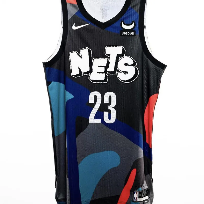 - Team & League Logos: Prominently features the distinctive Brooklyn Nets and associated logos as seen on court.