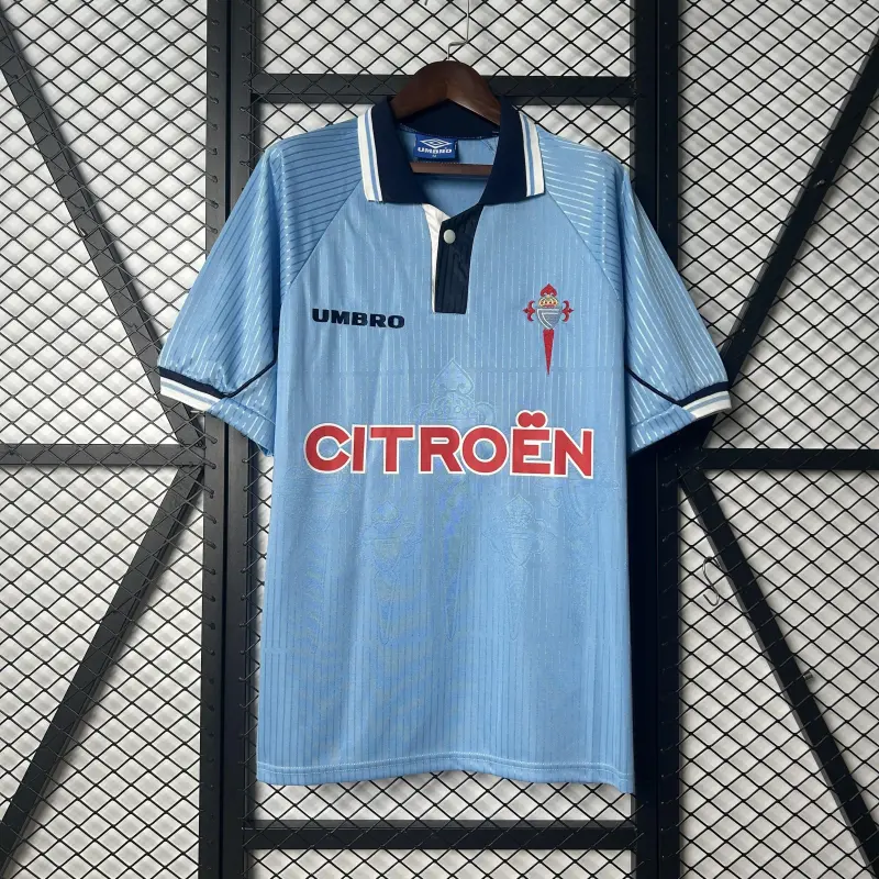 Step onto the pitch of nostalgia with this officially styled 97-99 Celta Vigo Retro Home Jersey. This classic sky blue shirt is a faithful recreation of the kit worn by the iconic Celestes squad of the late 90s, instantly recognizable and forever cherished by true fans.