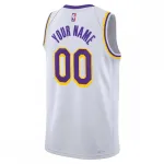 This replica jersey is built for performance and pride. The crisp, clean white base is instantly recognizable as the Lakers’ classic Association color, symbolizing home court brilliance. The design features the legendary Lakers wordmark arched across the chest in the team’s signature deep purple, outlined in vibrant gold. The player name and number on the back are customizable, letting you honor your favorite current star, a past legend, or even make it your own.