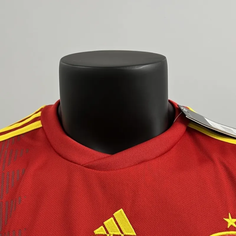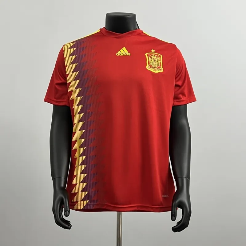 This iconic home kit features the distinctive red and yellow colors that make the Spanish national team instantly recognizable on the pitch. The design pays homage to a memorable period, featuring a traditional collar and the celebrated team badge, meticulously recreated to capture every detail of the original.