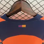 Own a piece of Barça’s future heritage with the 25-26 Barcelona third kit – a bold fusion of retro inspiration and modern innovation. Inspired by the iconic Total 90 designs of the mid-2000s, this season’s alternate jersey revives the legendary “Bright Mango” orange and “Midnight Navy” color clash, echoing the beloved 2009-2011 away uniforms while adding contemporary flair.