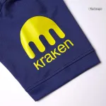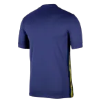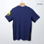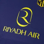 This season’s away jersey presents a sophisticated and modern take on the club’s identity. The design moves away from the traditional secondary colors, introducing a striking and elegant deep navy blue base, symbolizing the strength and depth of the squad.