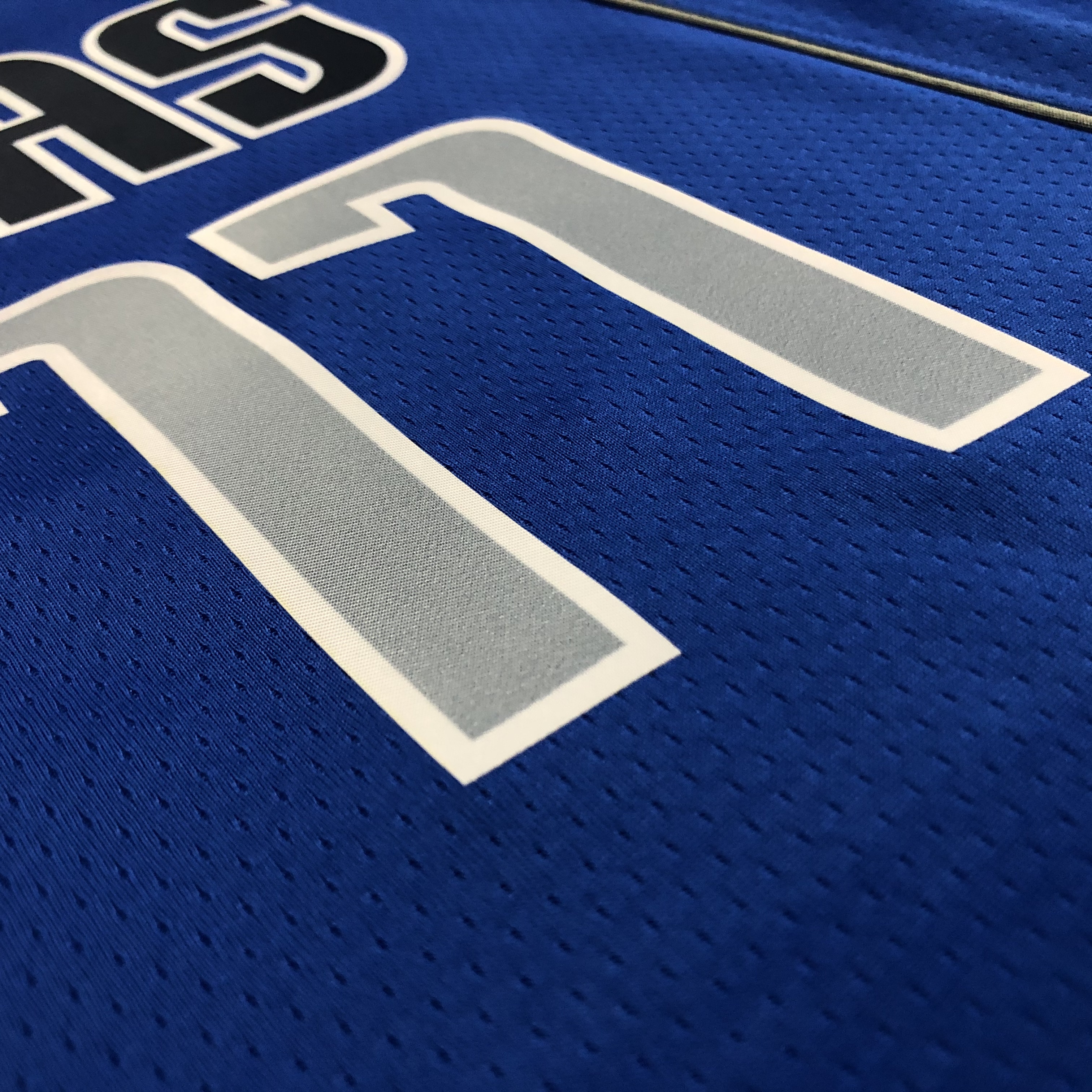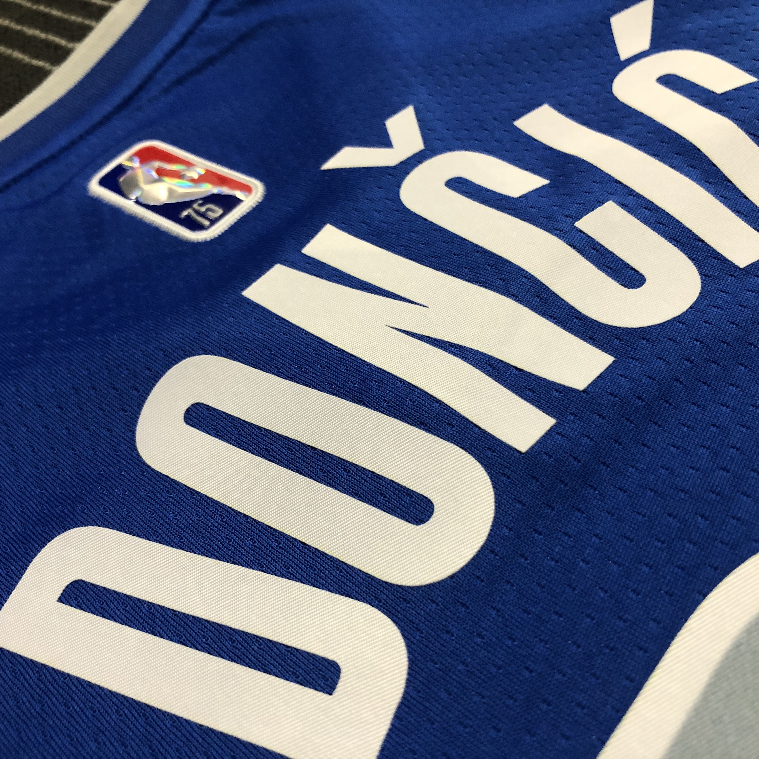 Every detail of this jersey is meticulously crafted to mirror the on-court aesthetic. The bold “MAVERICKS” wordmark arches across the chest in crisp, white lettering outlined in silver, reflecting the anniversary celebration. The standout feature is the commemorative 75th Anniversary patch, a mark of honor sewn onto the jersey. Player details are rendered with precision: the number #77 and the name DONCIC on the back are presented in the team’s distinctive font with silver trim, ensuring maximum visibility and style. Constructed from breathable, performance-fit fabric, this swingman-style jersey is perfect for game-day excitement or everyday comfort.