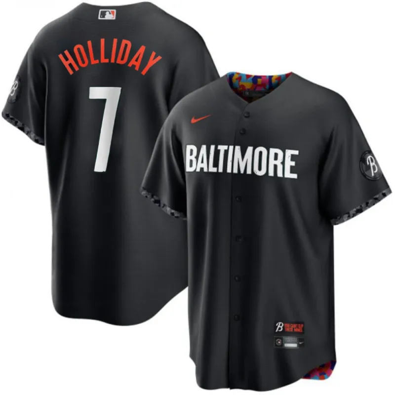 O preço original era: $119.99.$23.99O preço atual é: $23.99.Jackson Holliday Baltimore Orioles Nike 2023 City Connect Replica Player Jersey – Black